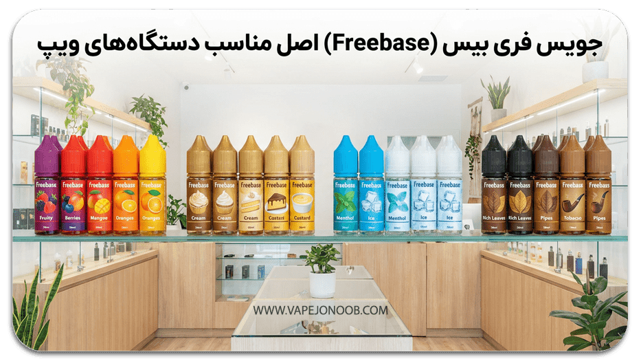 خرید جویس فری بیس (Freebase) اصل با طعم میوهای، دسری، خنک و تنباکویی. مناسب دستگاههای ساب اهم و ویپ با کیفیت بالا.