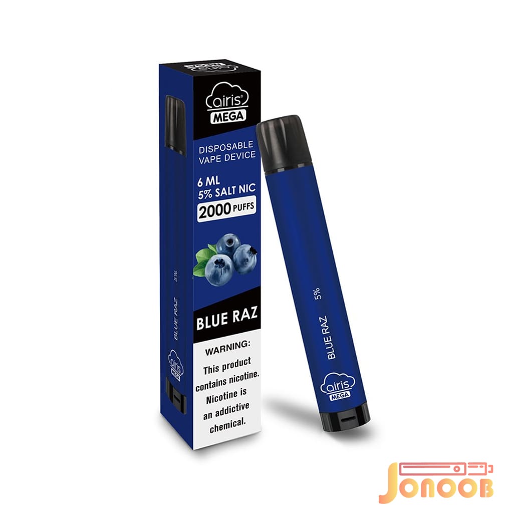 پاد یکبار مصرف AIRIS MEGA 2000 PUFFS BLUE RAZZ دارای باتری 1050 میلی آمپر و درپوش محافظتی آنتی باکتریال و ضد گرد و غبار است .