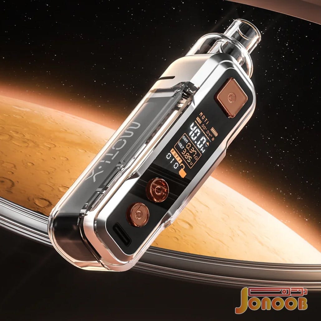 پادماد MOTI X ترکیبی از طراحی مدرن، قدرت بالا (تا ۴۰ وات)، دارای باتری ۲۰۰۰ میلیآمپرساعتی، نمایشگر رنگی، تنظیم جریان هوا و کویل مش ۰.۳۵ اهم برای بخار غلیظ و طعم عالی.