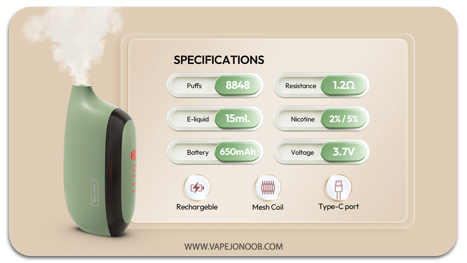 در این پاد یکبار مصرف 9000 پاف از مش کویل 1.2 اهم استفاده شده که با هر بار کامگیری از دستگاه، همان طعم و کلود کام اول را احساس می کنید.