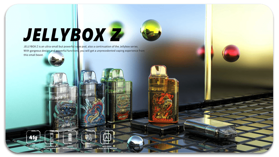 پاد سیستم Rincoe Jellybox Z افزودهای قدرتمند به خانوادهٔ Jellybox است که با وجود اندازه بسیار کوچک، کیفیت بالایی برای تجربه ویپینگ ارائه میدهد. طراحی زِد با ترکیب بدنه PCTG + PC، وزن حدوداً ۴۱ گرم و ابعاد 73×39×15.5 میلیمتر، آن را به همراهی عالی برای استفاده روزمره تبدیل کرده است.