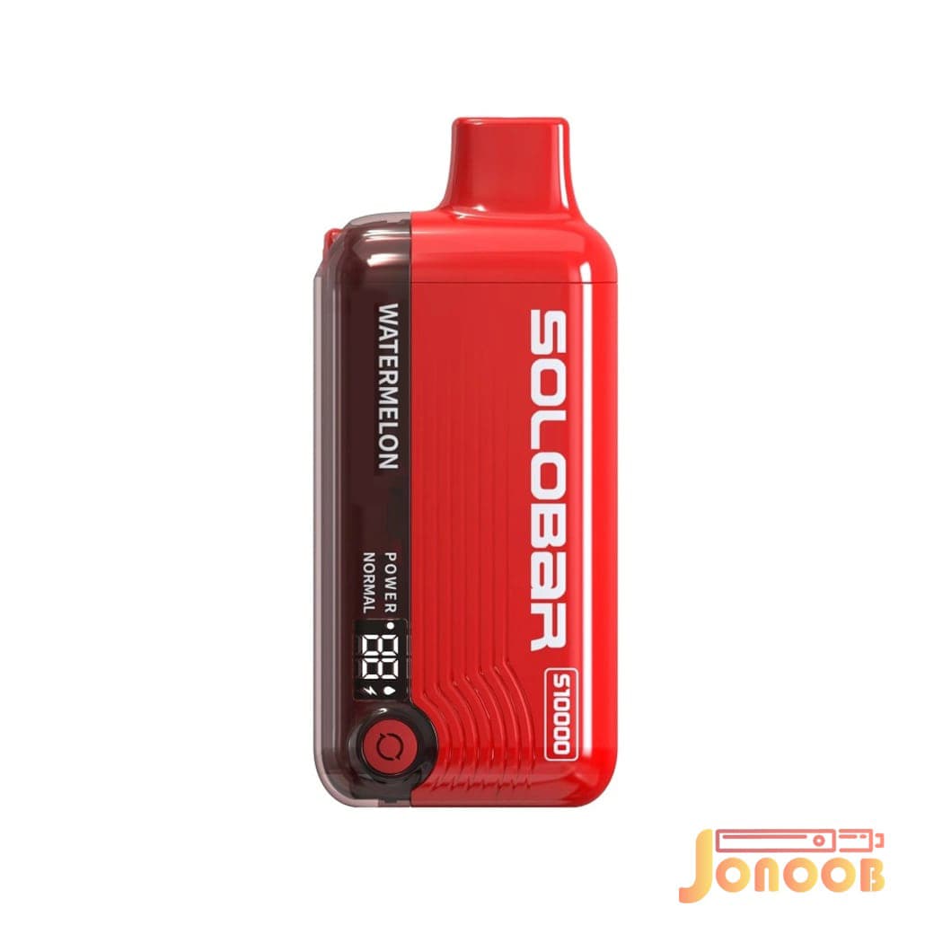 پاد یکبار مصرف SOLO BAR S10000 PUFFS WATERMELON ICE دارای باتری 600 میلی آمپر قابل شارژ است.