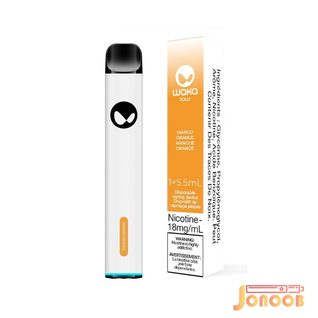 پاد یکبار مصرف WAKA SOLO 1800 PUFFS MANGO ORANGE دارای باتری 850 میلی آمپر غیرقابل شارژ است.
